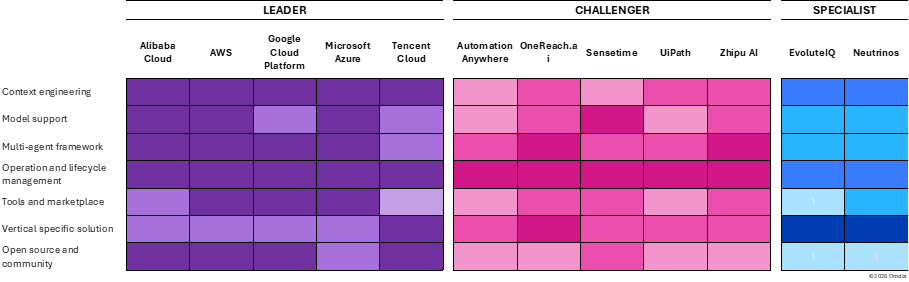 This report explores the agentic AI platform market targeting enterprise users and developers in the Asia & Oceania region. It systematically evaluates the performance of major cloud service providers based on technical capabilities, market penetration, and strategic positioning. The research highlights the rapid transition from generative AI assistants to autonomous agents, predicting that the agentic AI software market in Asia & Oceania will grow from $271 million in 2025 to $9.7 billion in 2030, representing a CAGR of 105%.
