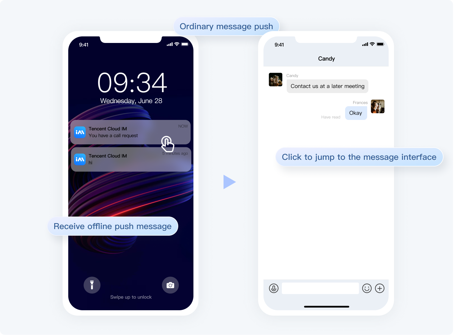 TUICore.registerEvent(TUIConstants.TIMPush.EVENT_NOTIFY, TUIConstants.TIMPush.EVENT_NOTIFY_NOTIFICATION, new ITUINotification() {@Overridepublic void onNotifyEvent(String key, String subKey, Map<String, Object> param) {Log.d(TAG, "onNotifyEvent key = " + key + "subKey = " + subKey);if (TUIConstants.TIMPush.EVENT_NOTIFY.equals(key)) {if (TUIConstants.TIMPush.EVENT_NOTIFY_NOTIFICATION.equals(subKey)) {if (param != null) {String extString = (String)param.get(TUIConstants.TIMPush.NOTIFICATION_EXT_KEY);// Getting ext for Definition redirect}}}}});