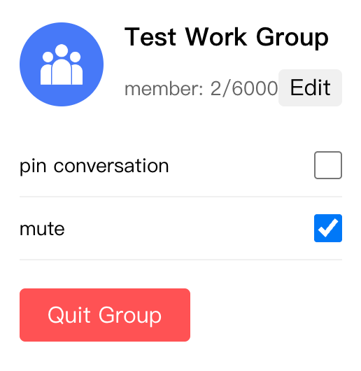 (groupID?: string) => Promise<void>(groupID?: string) => Promise<void>import React, { useState } from 'react';import { useGroupSettingState, GroupPermission } from '@tencentcloud/chat-uikit-react';const GroupSettingPanel = () => {const {groupID,groupName,avatar,memberCount,maxMemberCount,isMuted,isPinned,hasPermission,setChatPinned,setChatMuted,updateGroupProfile,quitGroup,} = useGroupSettingState();const [isEditing, setIsEditing] = useState(false);const [newName, setNewName] = useState(groupName || '');const handleUpdateName = async () => {try {await updateGroupProfile({ name: newName });setIsEditing(false);} catch (error) {console.error('update failed:', error);}};if (!groupID) return <div>Select group</div>;return (<div className="group-setting">{/* Group chat info */}<div className="group-info"><img src={avatar} alt="group avatar" className="group-avatar" />{isEditing ? (<div className="edit-form"><inputvalue={newName}onChange={e => setNewName(e.target.value)}className="name-input"/><button onClick={handleUpdateName}>save</button><button onClick={() => setIsEditing(false)}>cancel</button></div>) : (<div className="group-details"><h3>{groupName}</h3><span>member: {memberCount}/{maxMemberCount}</span>{hasPermission(GroupPermission.UPDATE_GROUP_INFO) && (<button onClick={() => setIsEditing(true)}>Edit</button>)}</div>)}</div>{/* chat settings */}<div className="chat-settings"><div className="setting-item"><span>pin conversation</span><inputtype="checkbox"checked={isPinned || false}onChange={e => setChatPinned(e.target.checked)}/></div><div className="setting-item"><span>mute</span><inputtype="checkbox"checked={isMuted || false}onChange={e => setChatMuted(e.target.checked)}/></div></div>{/* action button */}<div className="actions"><button onClick={quitGroup} className="danger-btn">Quit Group</button></div></div>);};
