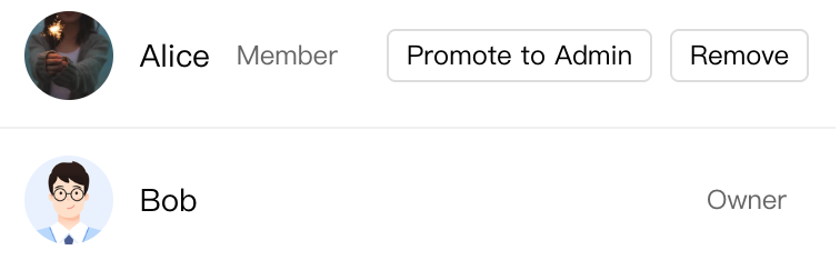 import React, { useEffect } from 'react';import { useGroupSettingState, GroupMemberRole, GroupPermission } from '@tencentcloud/chat-uikit-react';const GroupMemberList: React.FC = () => {const {allMembers,hasPermission,getGroupMemberList,setGroupMemberRole,deleteGroupMember,} = useGroupSettingState();useEffect(() => {getGroupMemberList({ count: 50 });}, []);const handlePromote = (userID: string) => {setGroupMemberRole({ userID, role: GroupMemberRole.ADMIN });};const handleRemove = (userID: string) => {deleteGroupMember({ userIDList: [userID] });};return (<div className="member-list">{allMembers?.map(member => (<div key={member.userID} className="member-item"><img src={member.avatar} alt="" className="member-avatar" /><span className="member-name">{member.nick}</span><span className="member-role">{member.role}</span>{hasPermission(GroupPermission.SET_MEMBER_ROLE) && (<div className="member-actions">{member.role === GroupMemberRole.COMMON && (<button onClick={() => handlePromote(member.userID)}>Promote to Admin</button>)}<button onClick={() => handleRemove(member.userID)}>Remove</button></div>)}</div>))}</div>);};