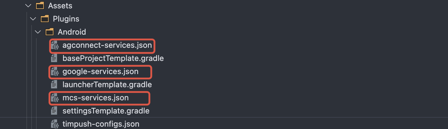 timpush-configs.json file to the Assets/Plugins/Android directory of the project. If the directory does not exist, create it manually.