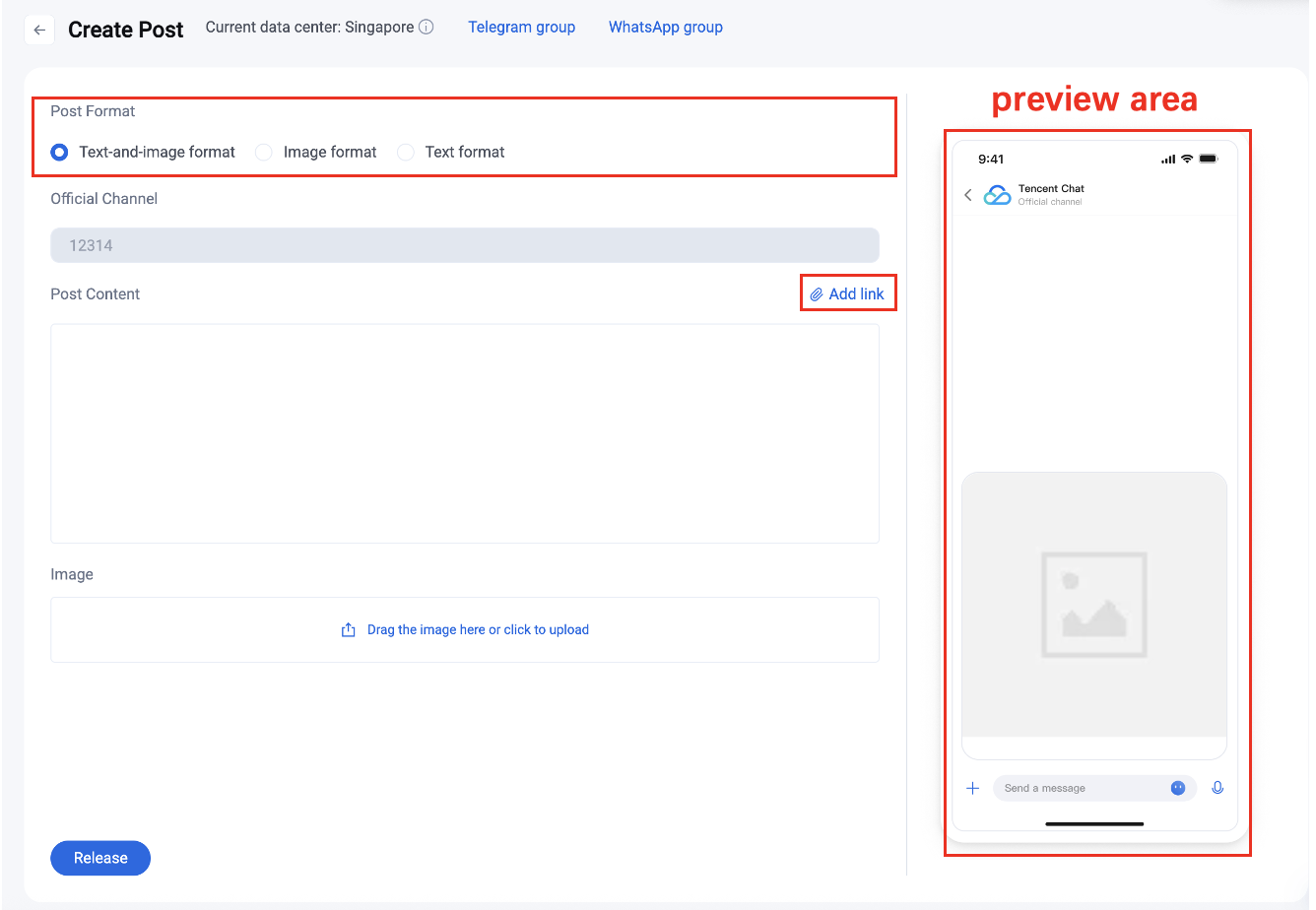 2. Edit Post Content. Enter the post content in the input box and upload images in the image upload area.