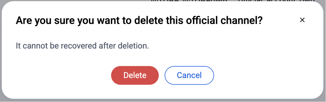 2. After clicking Delete button, a confirmation window will appear. Deleted official channels cannot be recovered.
