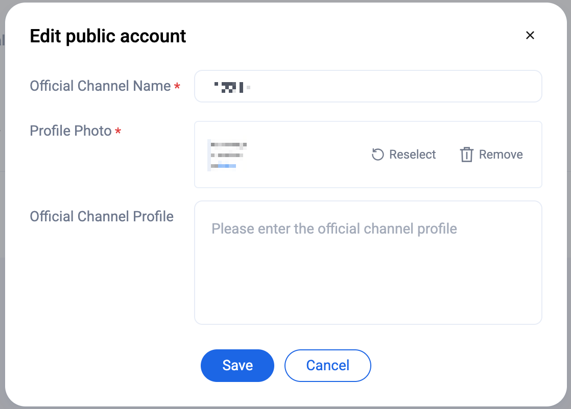 2. In the Edit Official Channel window, update the official channel name, description, or photo as needed.
