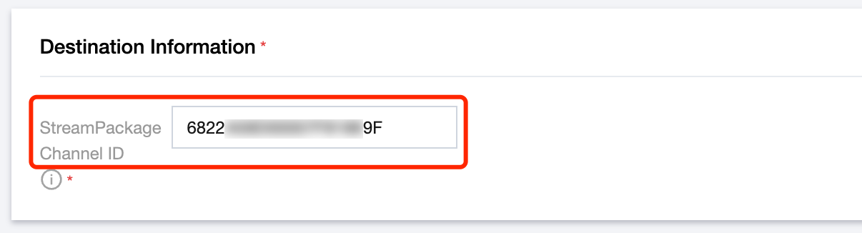 For destination information, fill in the ID of the second channel created in StreamPackage.