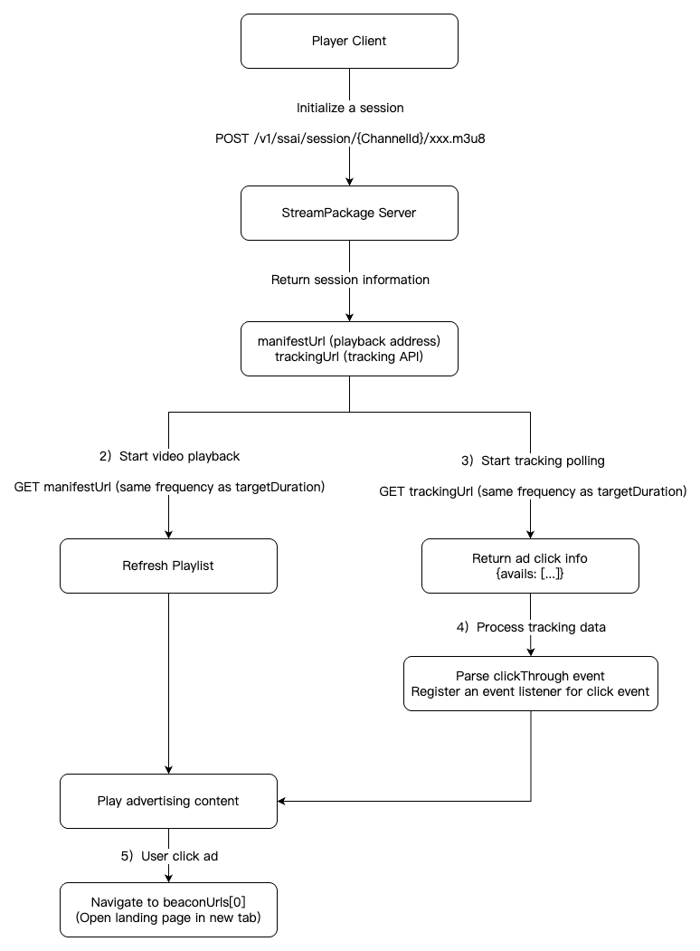 3. Tracking poll: Poll trackingUrl at the same targetDuration frequency to get ad click info.
