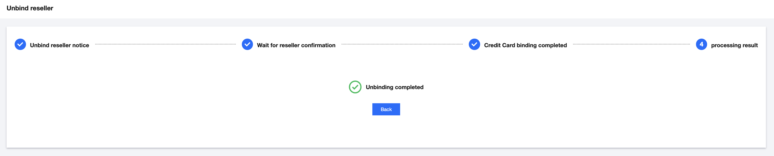 Once you initiate the unbinding request, the reseller will be notified and needs to confirm the request. Upon receiving the reseller's confirmation, the system will check the account. Only accounts that meet the unbinding conditions can proceed with the operation.