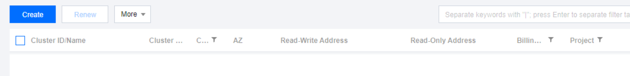 The Renewal Management page provides features such as Batch Renewal, Set to Auto-Renewal, and Collective Expiration Date for clusters. For more information, see Renewal Management. Related APIs