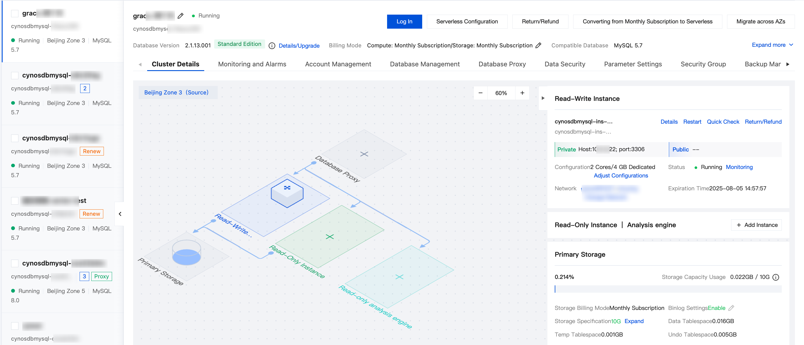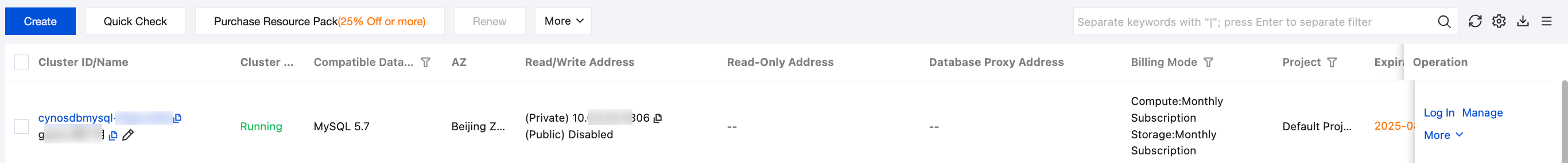 | You can restore an isolated cluster as needed. The recycle bin displays the period during which the cluster can be restored. | |