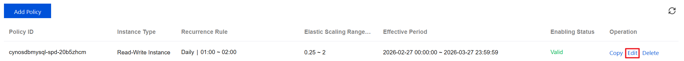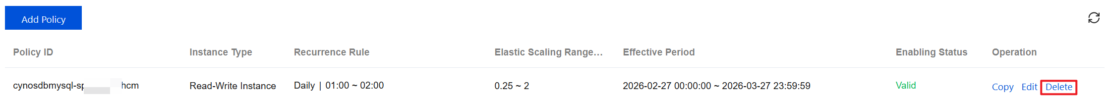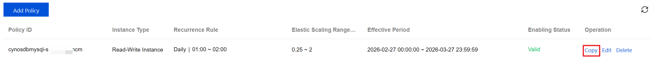 After adding a rule-based elastic policy to an instance under a Serverless cluster, you can copy, modify, or delete that policy.