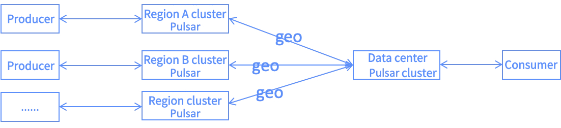 Given the above requirement scenarios, TDMQ for Apache Pulsar Pro Edition implements cross-region cluster replication based on the Geo Replication solution. TDMQ for Apache Pulsar Pro Edition supports scenarios such as cross-region disaster recovery, global data archiving, and cross-region consumption.