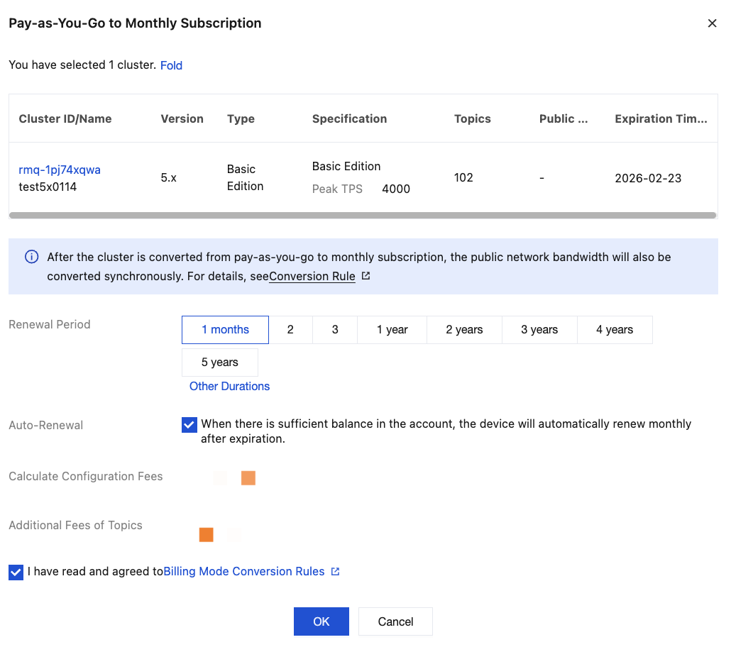 4. Select I have read and agreed to Billing modeConversion Rules, and click OK.