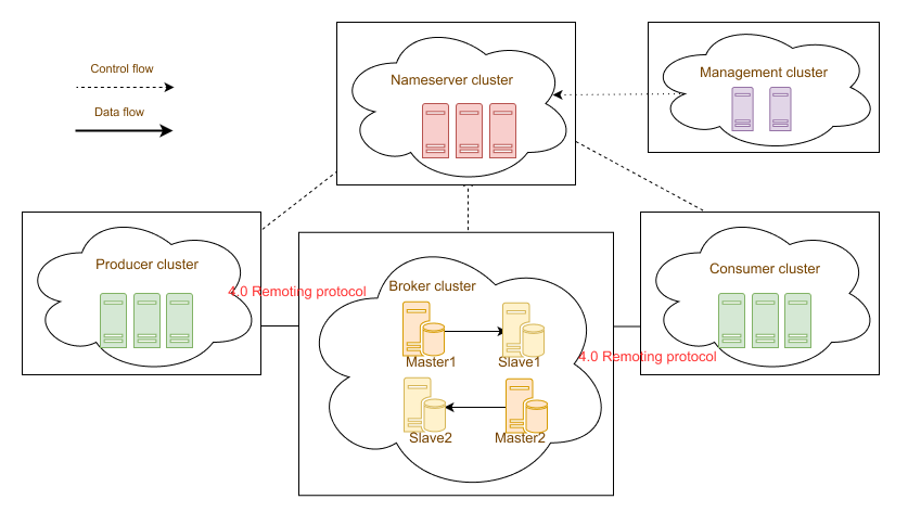 NameServer cluster: a server-side application responsible for route addressing and broker heartbeat registration.