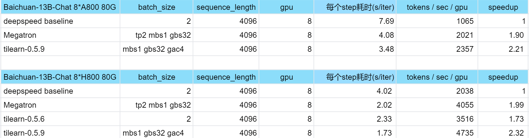 TilearnHybridZeroStage=1 3. Tilearn-Angel training acceleration effect