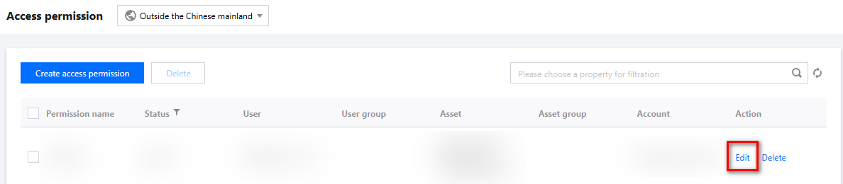 3. On the Access Privileges page, click Edit on the right side of the corresponding access permission.