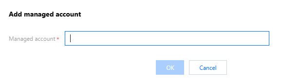 4. In the Account Management popup, click Add managed account, enter the asset account, and click OK to save the changes.