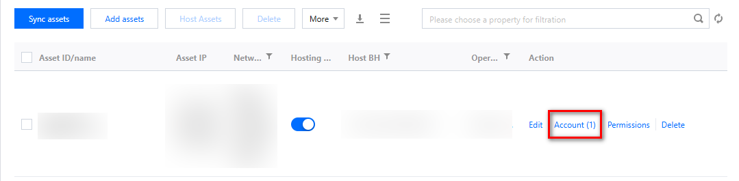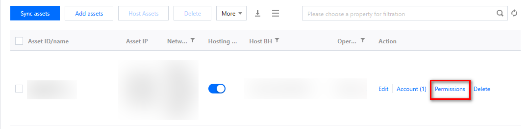1. In Servers, locate the relevant asset and check whether an account has been entered. If the relevant system login account has been entered, click Permissions in the Operation column. 2. On the Access permissions page, select the required username, click Expand, choose the necessary permissions, and click Edit.