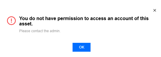 When an Ops personnel logs in to a resource and clicks Accessing Server, the prompt "Not authorized for any account on this server" appears, preventing normal access to the resource, as shown below: