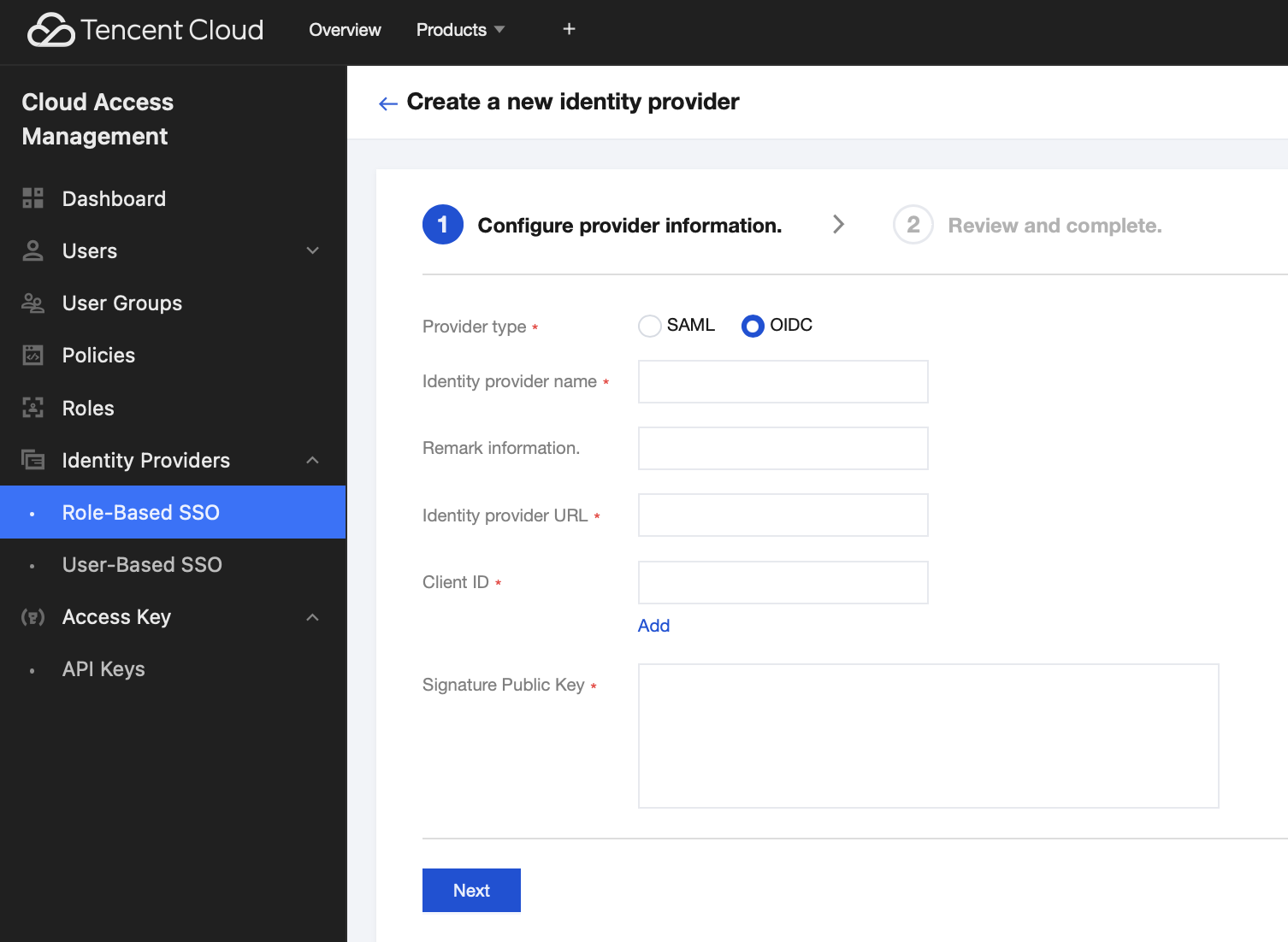 Tencent Cloud Role ID: the role ID obtained in procedure 2.