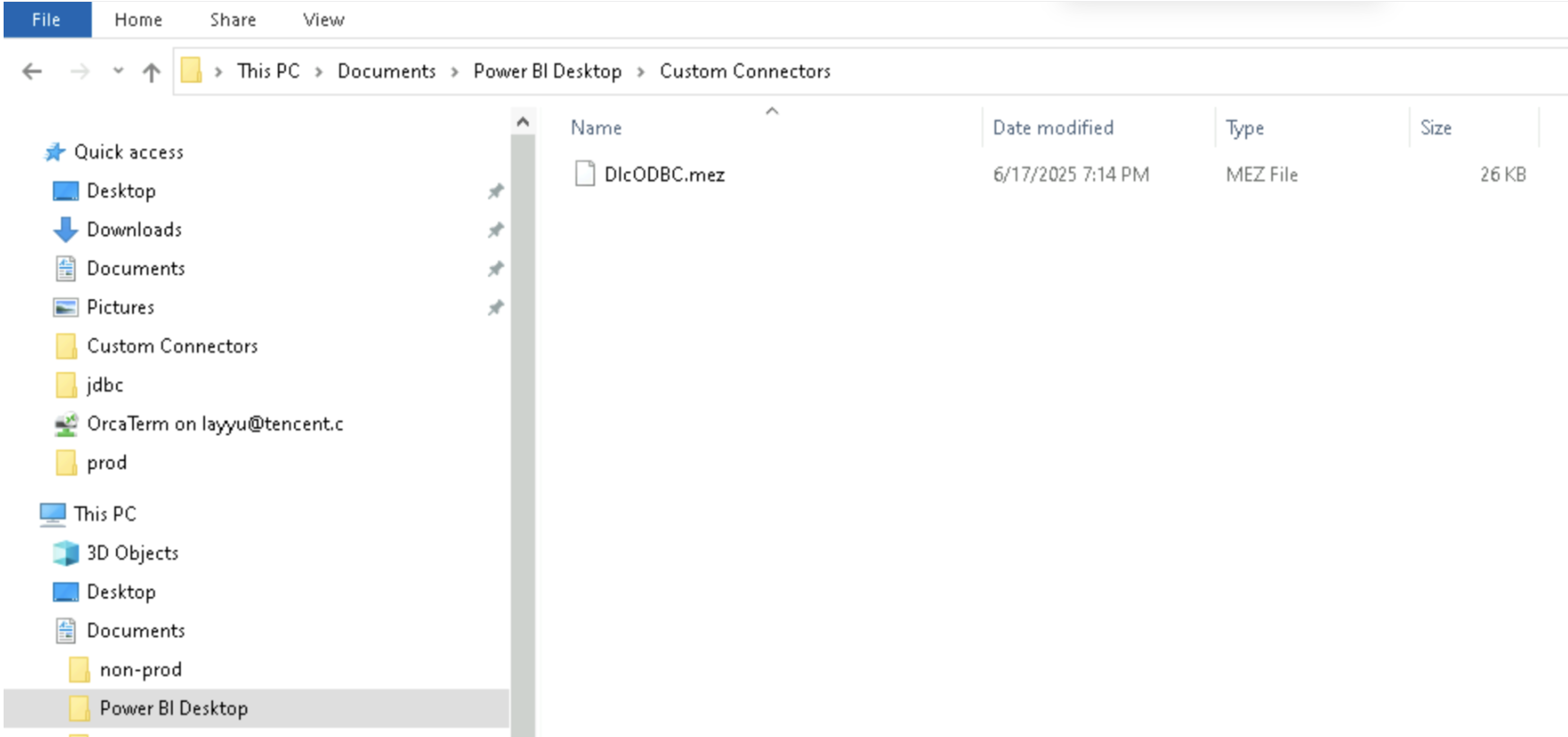2. Copy it to the local path: C:\\Users\\{userName}\\Documents\\Power BI Desktop\\Custom Connectors\\.