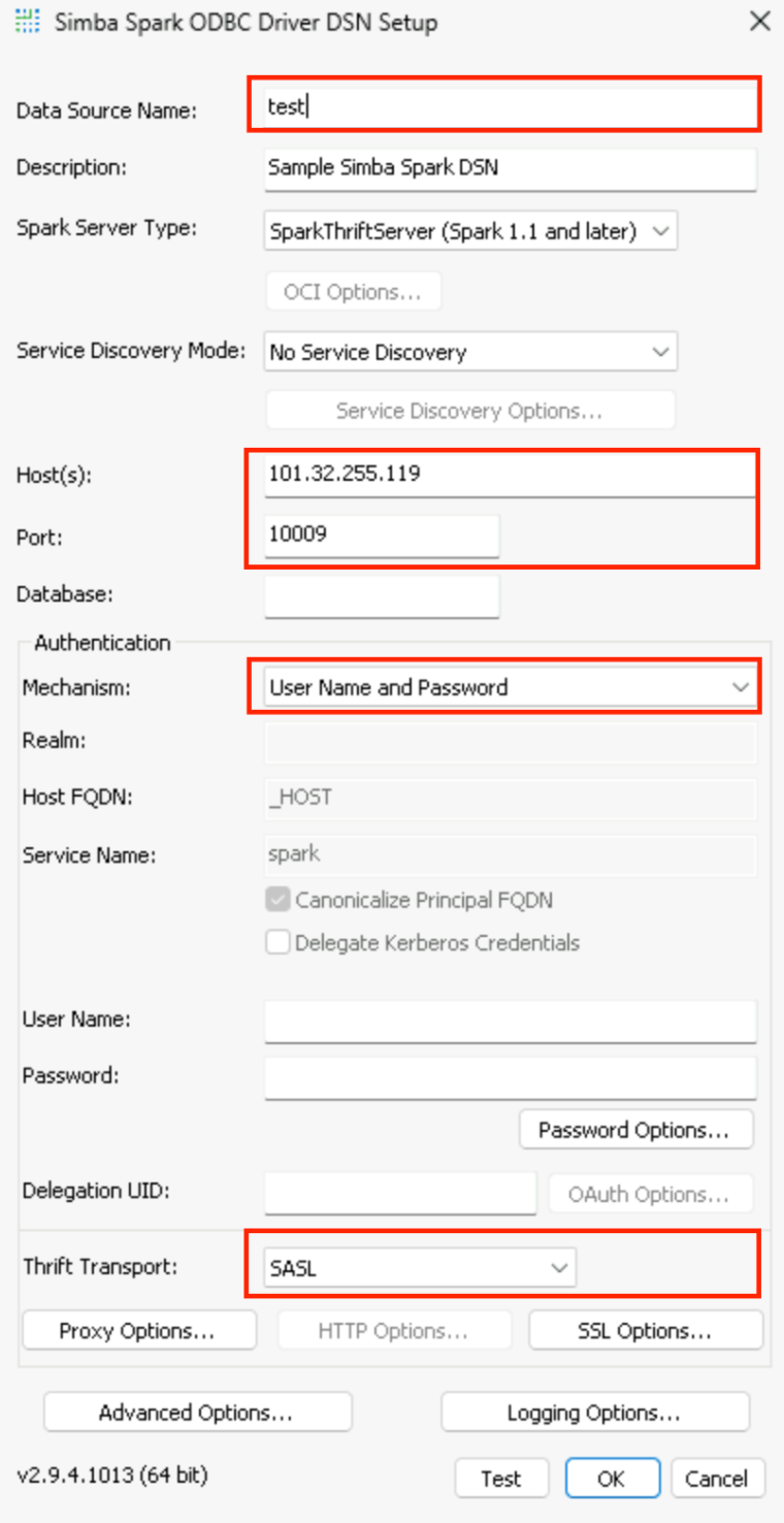 Data Source Name: set a custom name (such as DLC_Spark).