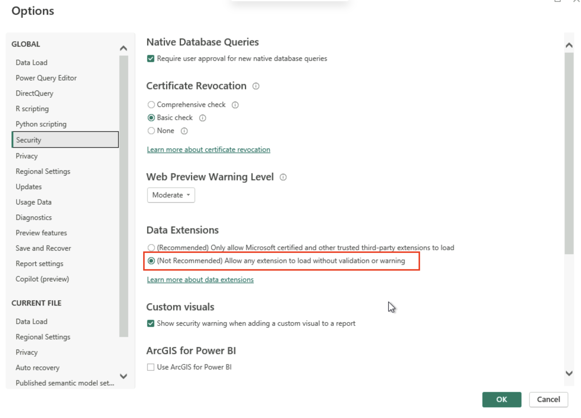 4. Click OK and restart Power BI Desktop.