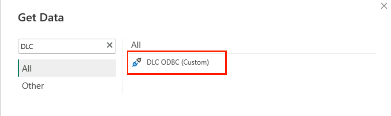 2. Search for DLC, select DlcODBC (Custom), and click Connect.