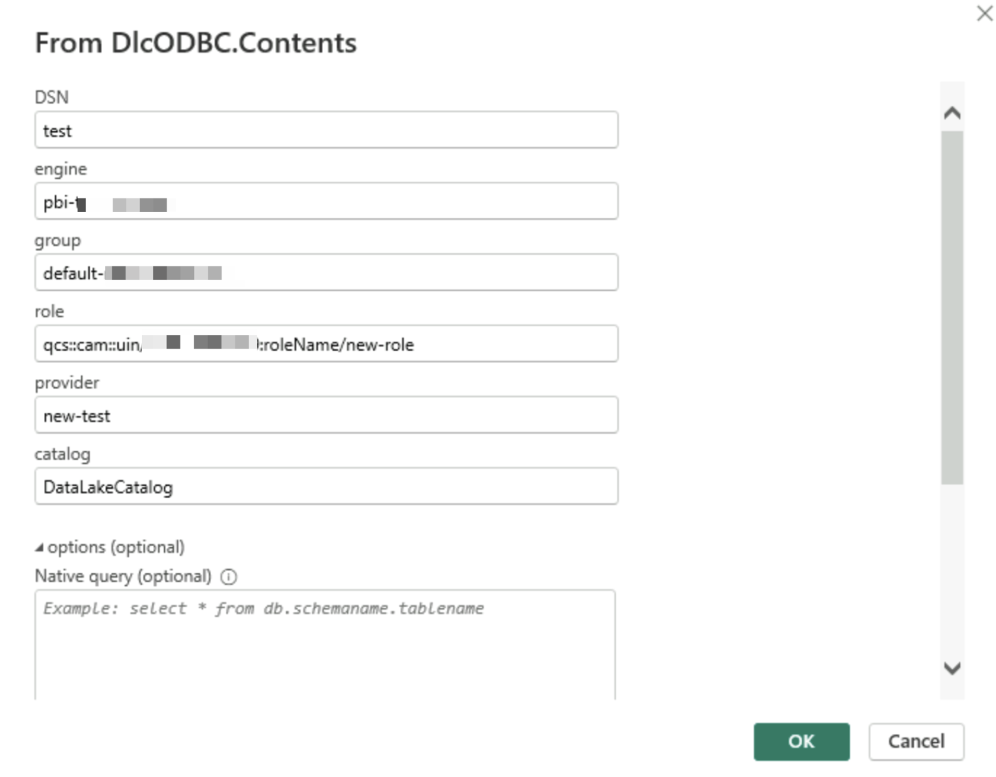 Parameter configuration: Fill in the DSN, engine name, resource group, role ID, etc. that match the Desktop version.