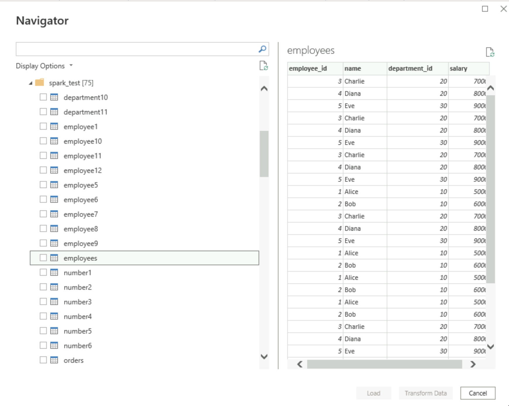 5. Preview the data table in the Navigator, check it, and click Load.