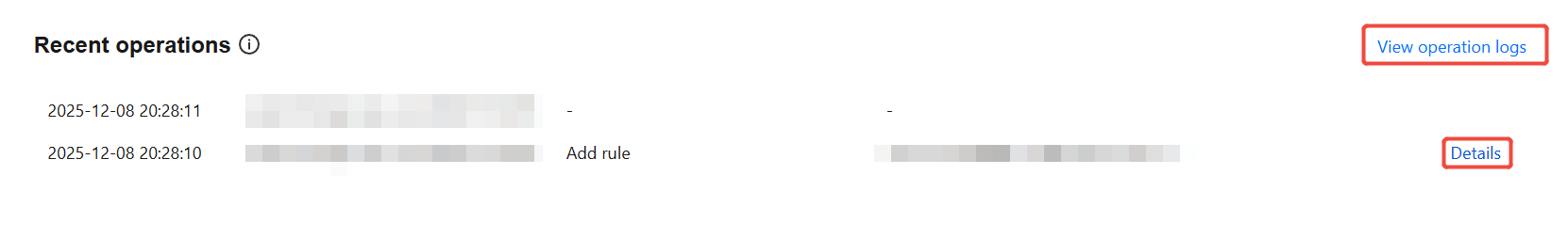 3. On the Internet Border Rule page, you can view recent operation records. Recent operation records show the recent operations performed by users on the rule list: