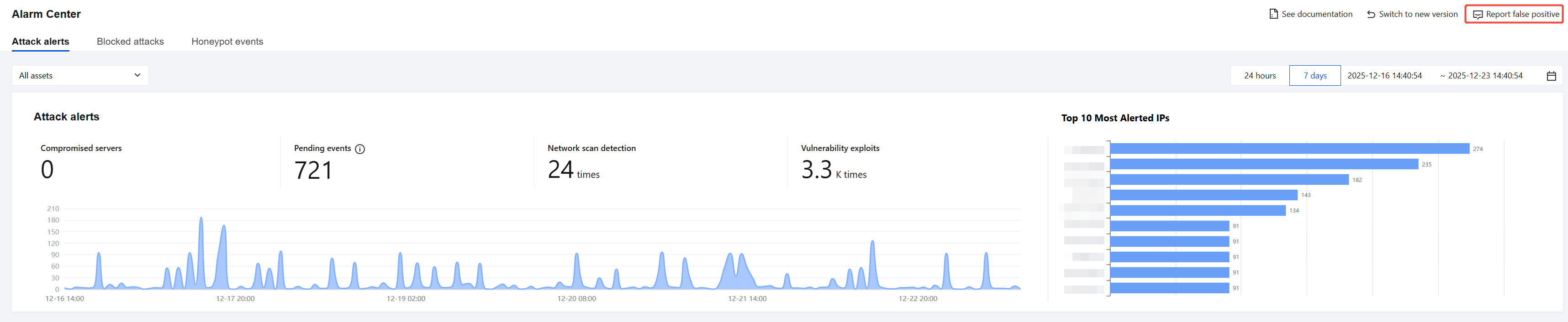 1. When you find that an alarm is a false positive, click Report false positive to submit the false positive information.