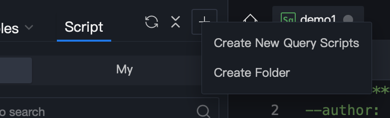 Method 1: Click "+", and select new query script.