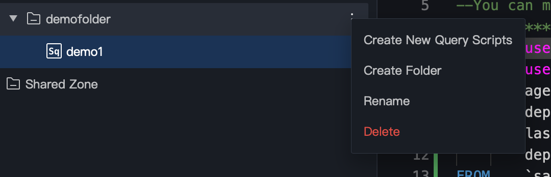 Method Two: Click the More button in the directory tree and select new query script.