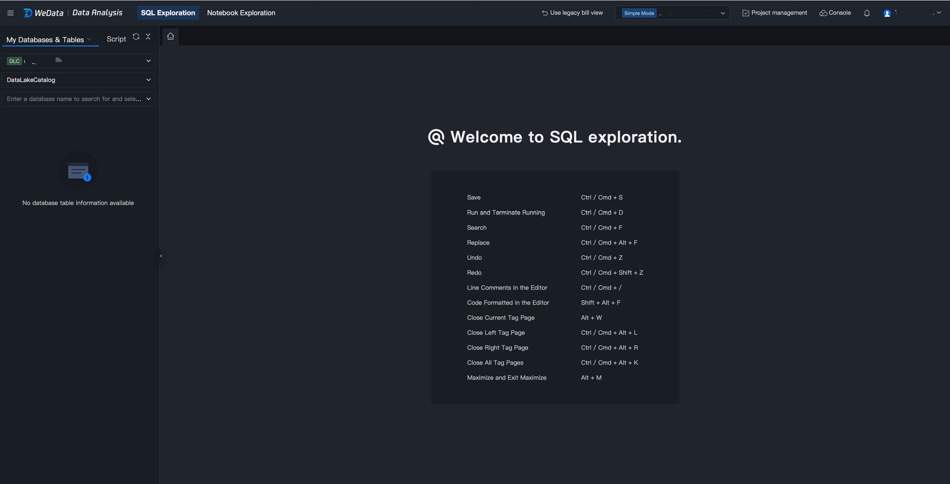 WeData SQL Exploration feature, oriented to data developers and business analysts, provides a convenient and quick data query and analysis IDE. It supports connecting to big data engines such as EMR and DLC for data exploration. Currently covered data source ranges include EMR-Hive, EMR-Kyuubi, EMR-Trino, EMR StarRocks, DLC, and TCHouse-X.