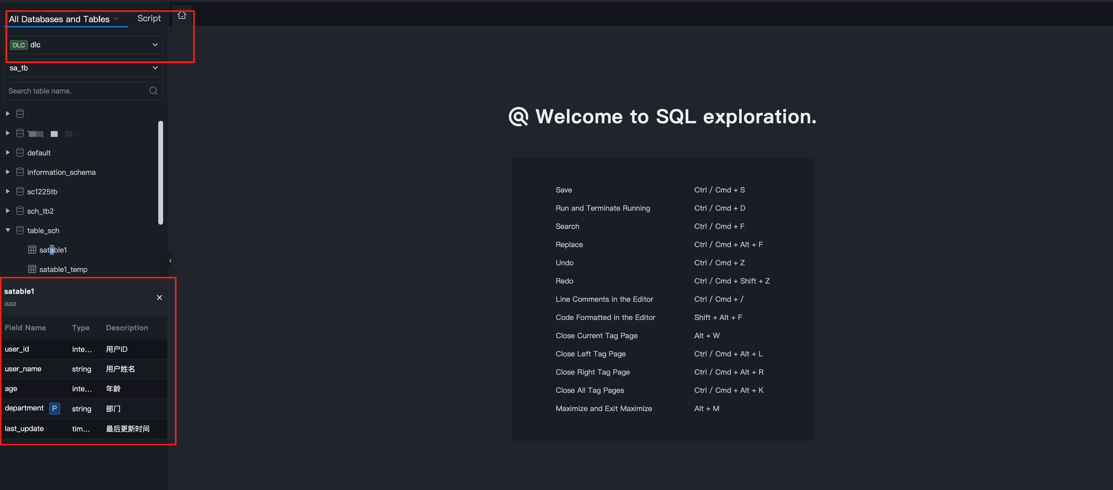3. Click data table name to quickly query field name, field type, and description.
