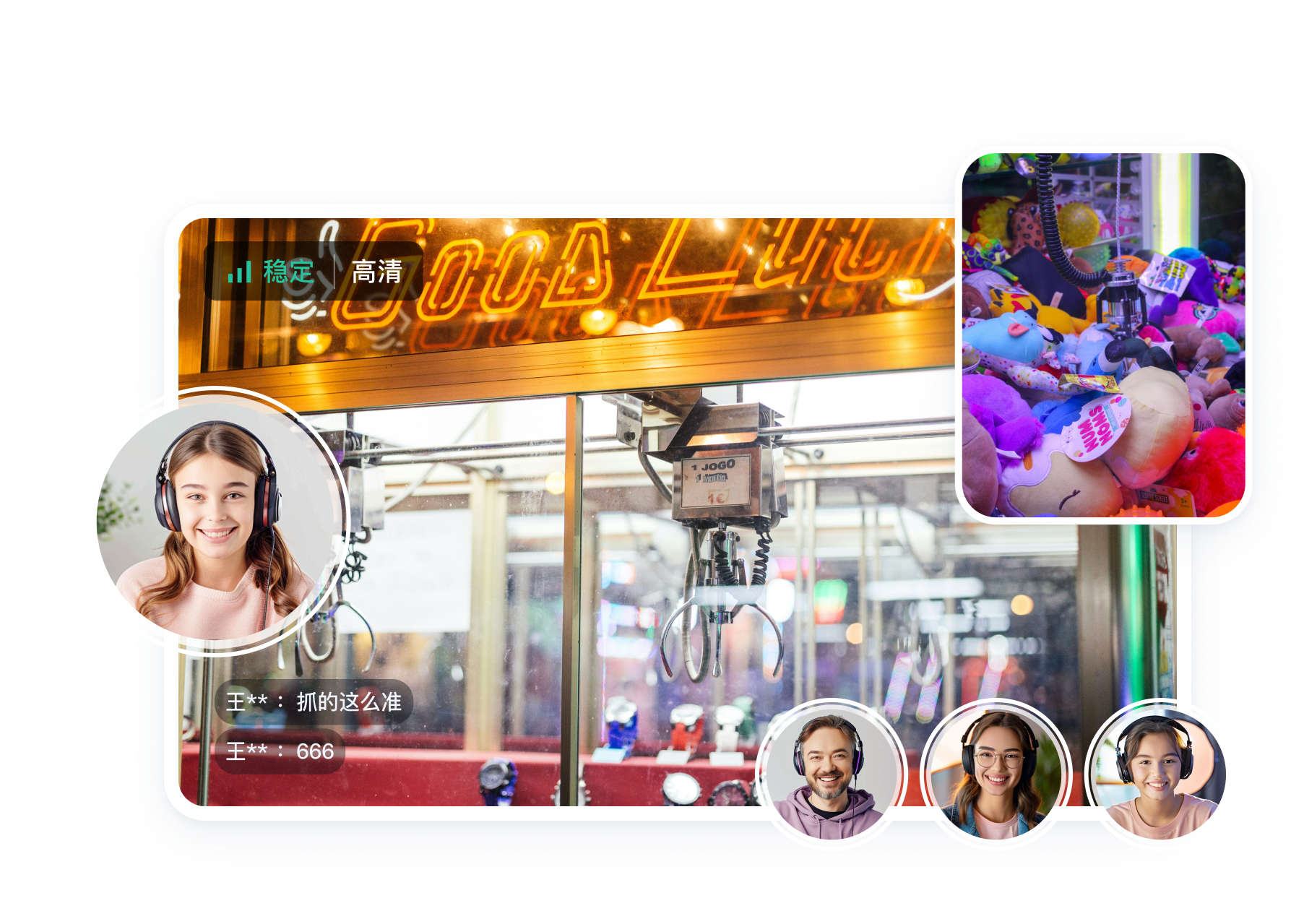 The online claw machine leverages video streaming and remote control technology, enabling users to remotely control the claw of a physical machine in real time through smartphones, tablets, or computers to grab toys or other prizes. It delivers an experience comparable to in-person claw machines while attracting online audiences for interaction and engagement. Tencent Cloud RTC Engine ensures end-to-end audio and video latency below 300ms and supports cross-platform compatibility, allowing users to play anytime, anywhere on WeChat Mini Programs, iOS, Android, or Web. The on-cloud recording feature captures exciting gameplay moments for marketing and boosting application influence. Implementation Scheme
