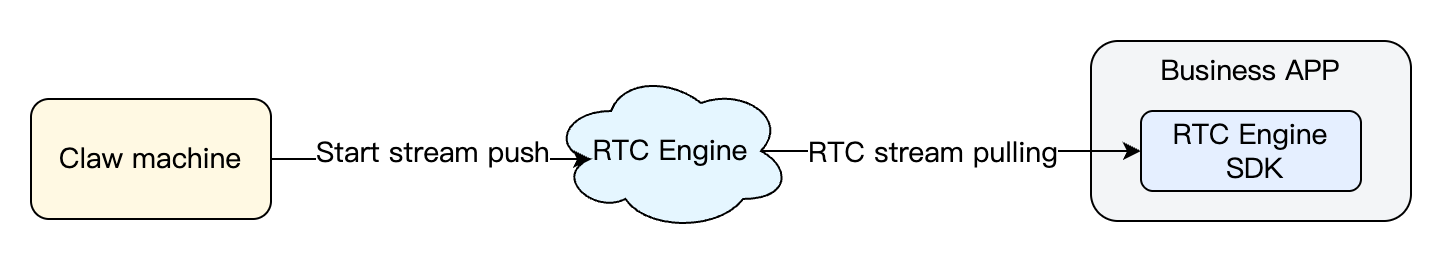 3. Users access the RTC Engine room corresponding to the claw machine through the business application and call the pull-stream API provided by the RTC Engine SDK to receive and watch the real-time audio and video stream.