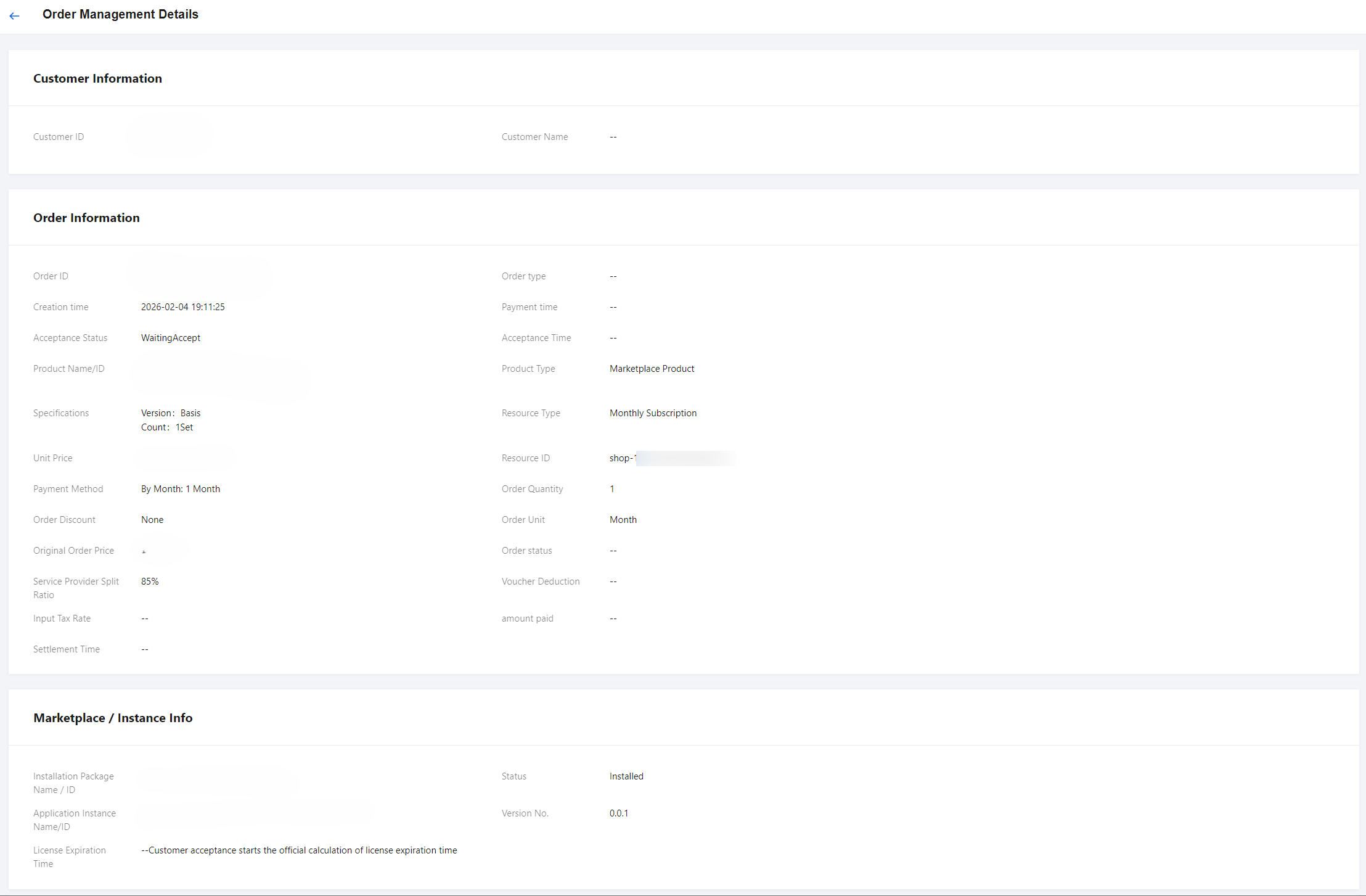 2. You can use filter criteria such as order ID, customer ID, product ID, instance ID, product type, order type, order status, order creation time to search and query orders.