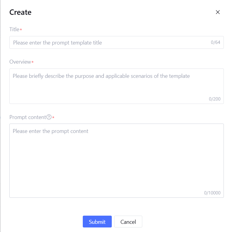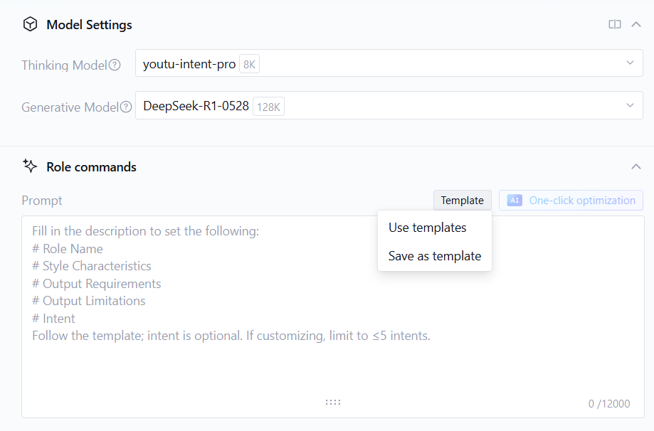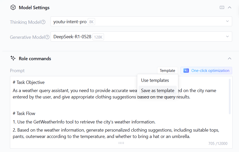 Prompt Template: A preset structured prompt framework containing best practices and optimization strategies for specific scenarios. Developers can use these templates directly or perform customization modifications based on templates. By using the Prompt Template feature, technical barriers in Intelligent Agent development can be significantly reduced, enabling quick creation of high-quality AI applications while underwriting application stability and reliability.