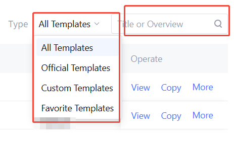 Click the template library, then filter by All Templates, Official Template, Custom Template, and Favorite in the upper-right corner. Meanwhile, users can also quickly locate the target template by searching the title or description.