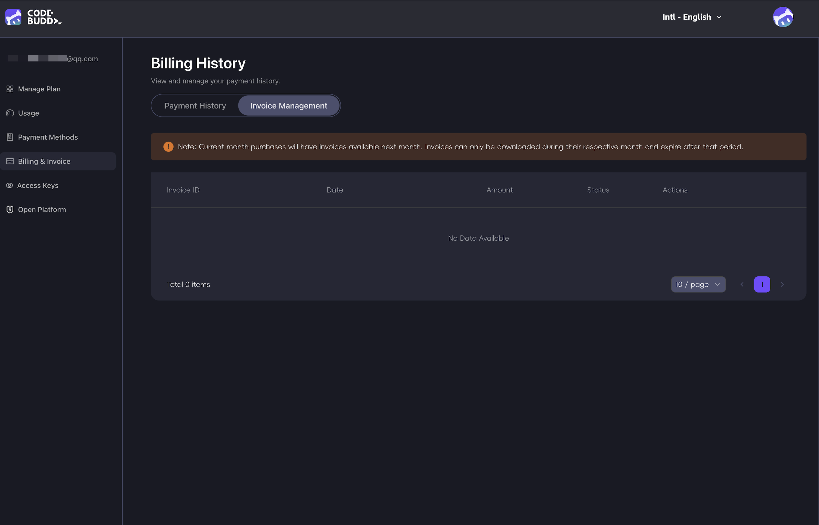 Users can log in to the Codebuddy official website to view invoices:
