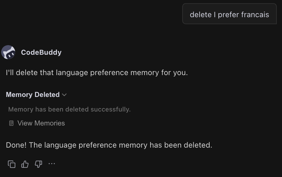 CodeBuddy will automatically identify and store your important information. Of course, when you want to emphasize something for the AI to remember, just tell it directly: