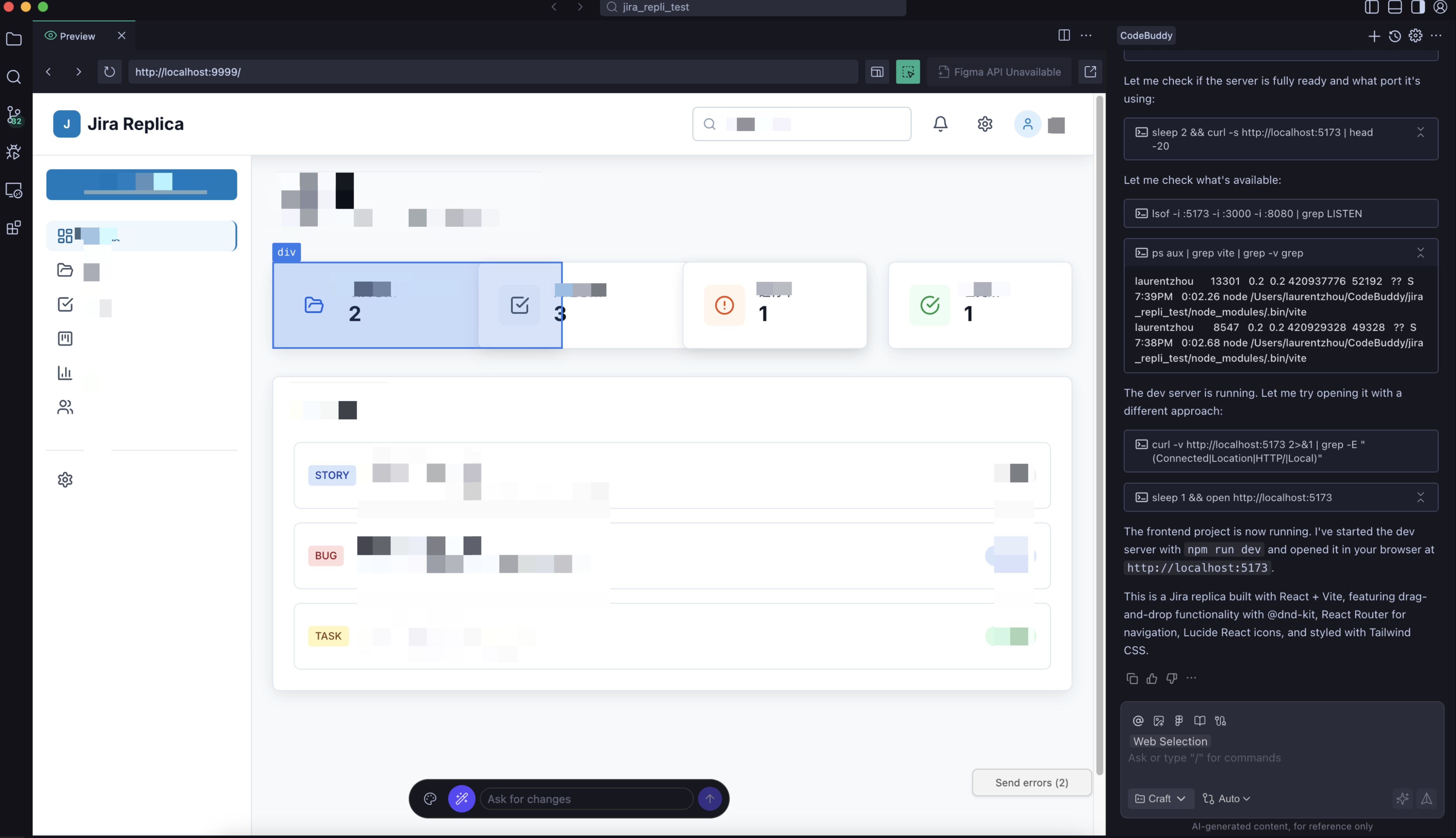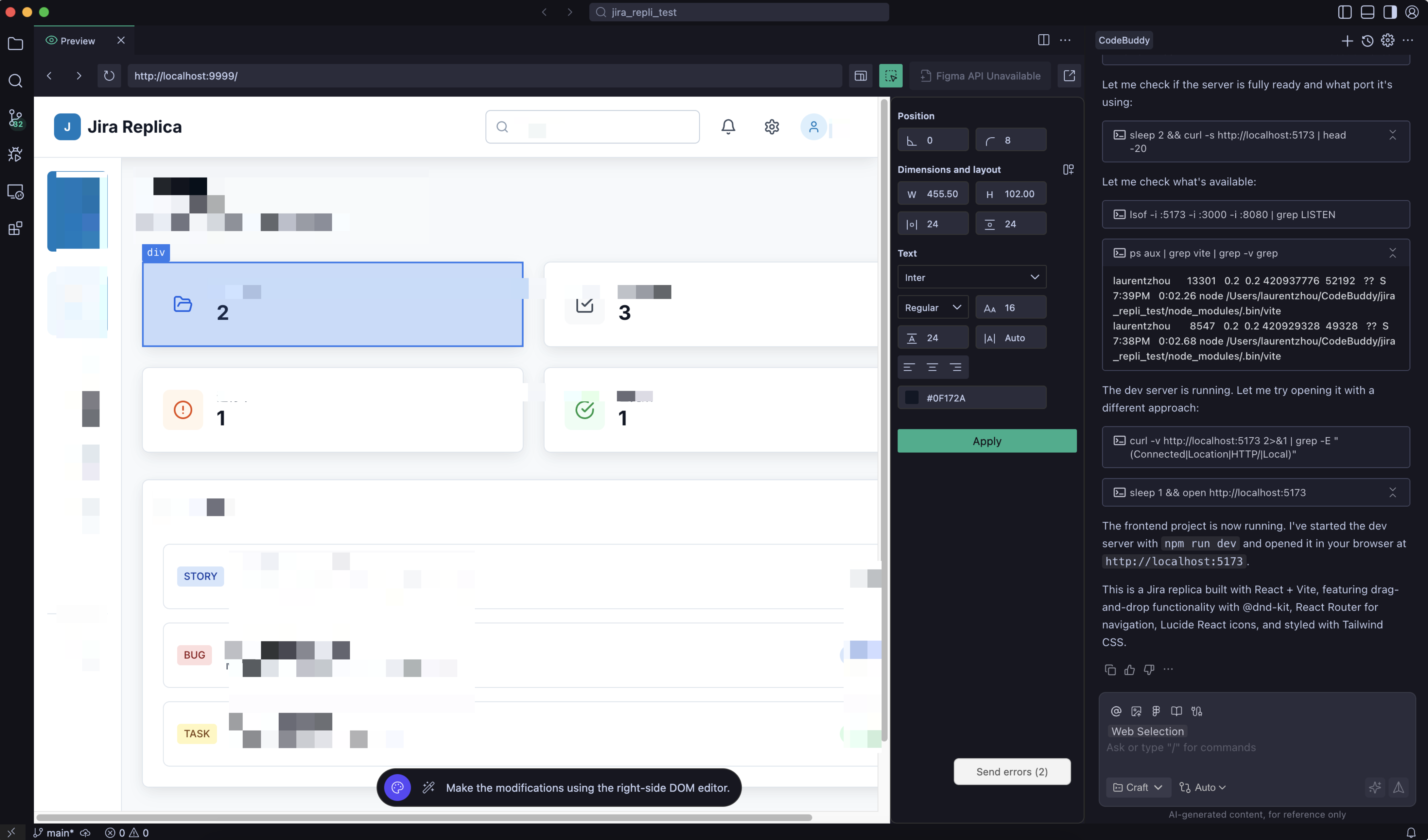 CodeBuddy IDE supports automatic rendering of code changes via a browser kernel, allowing you to instantly view the running effect of the current project code without switching tools or manually starting services, achieving real-time debugging and preview.