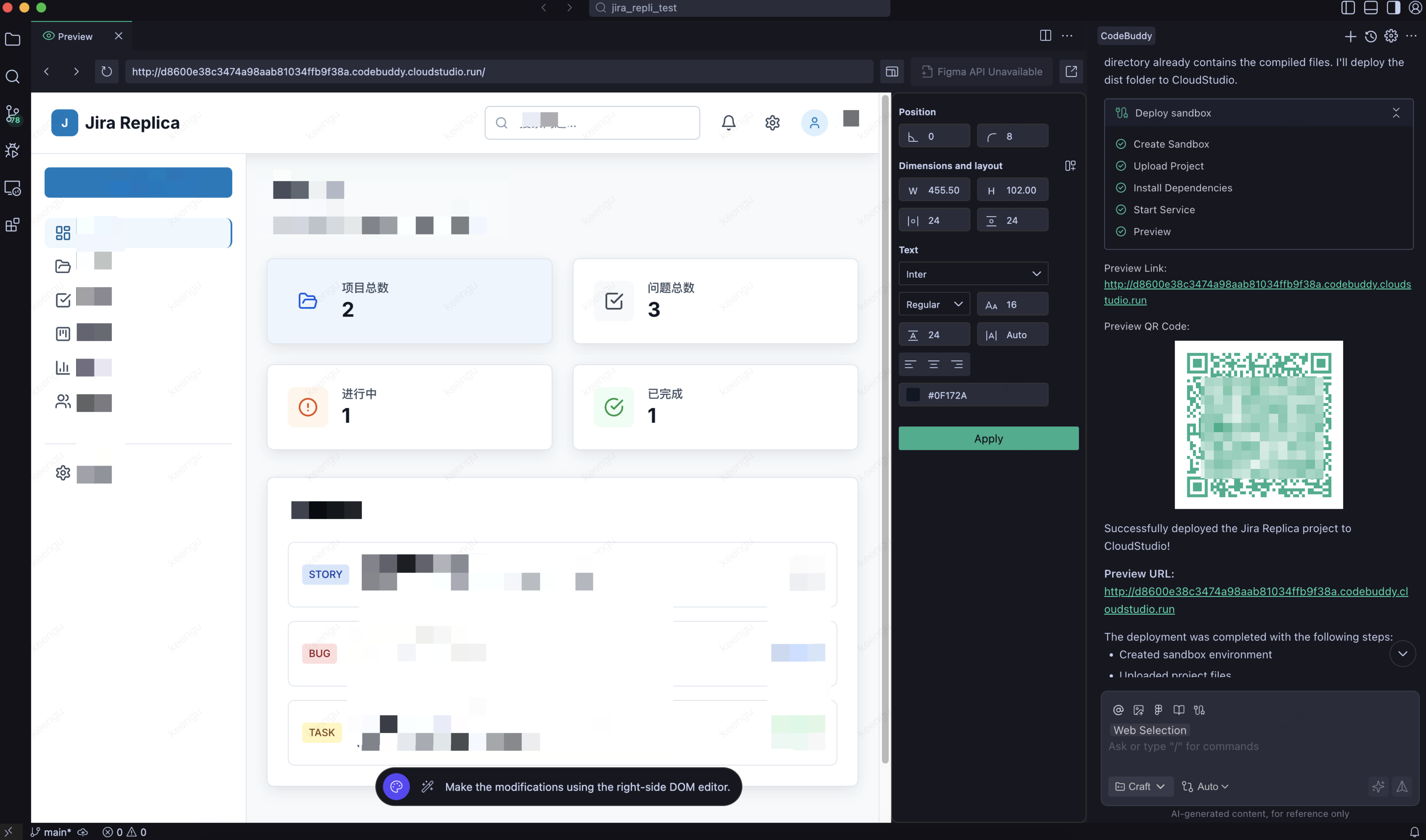 Cloud Studio provides one-click deployment capabilities, allowing applications to be quickly published to a cloud sandbox environment, generating a shareable access link for immediate team trial and feedback.