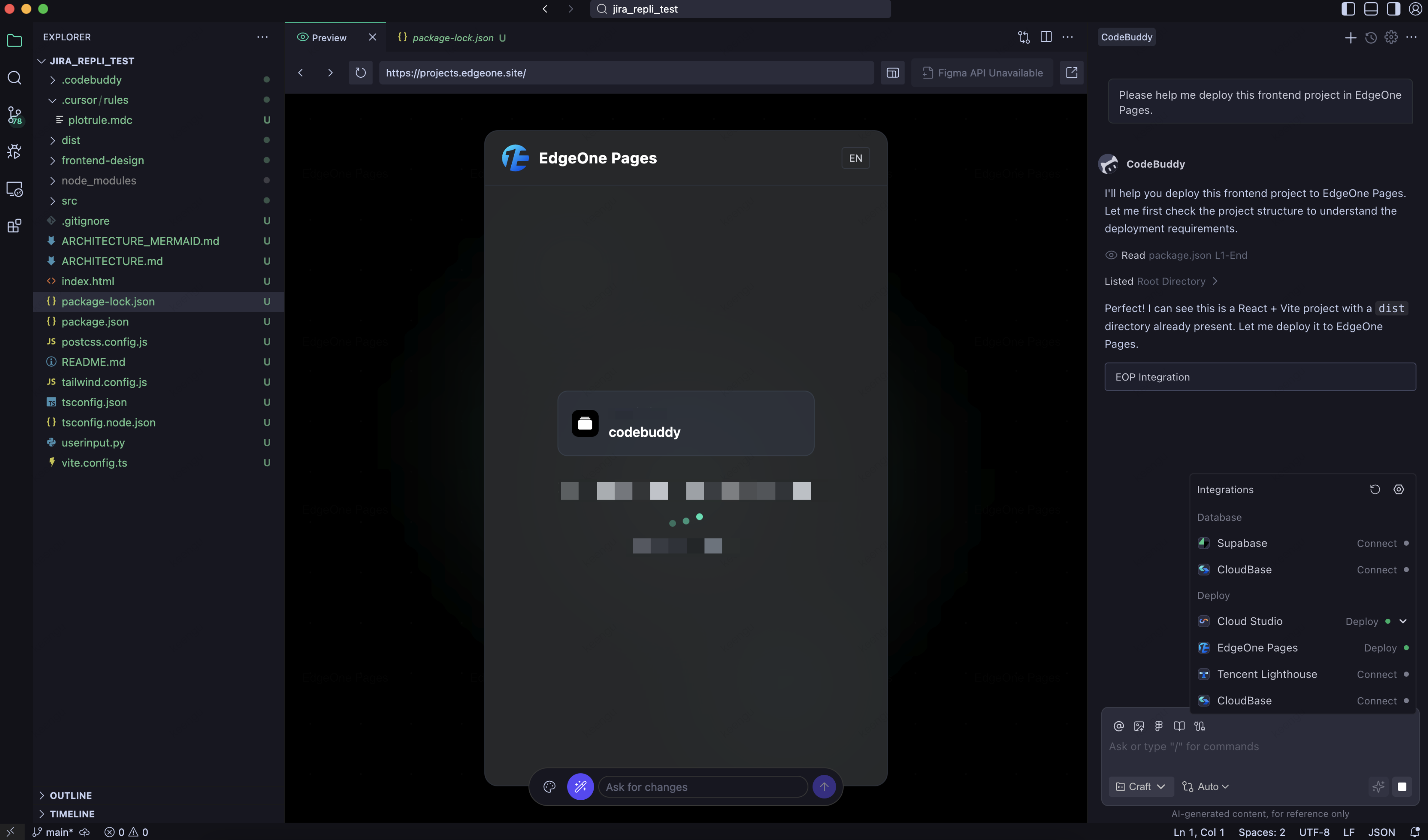 2. The Agent will first scan the entire codebase, analyze the project type, and choose to use the Cloud Studio sandbox environment for deployment.