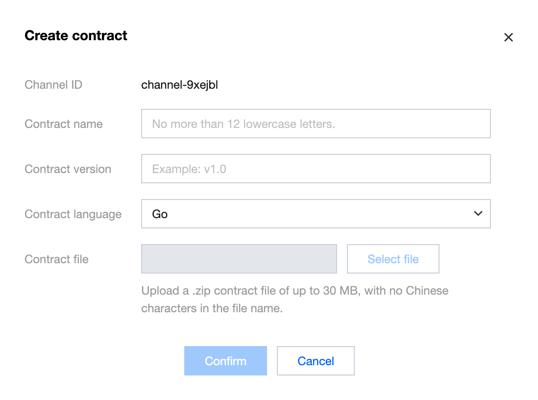 4. Fill in the corresponding contract name, version, etc., and upload the contract file on the Create Contract page. As shown below: