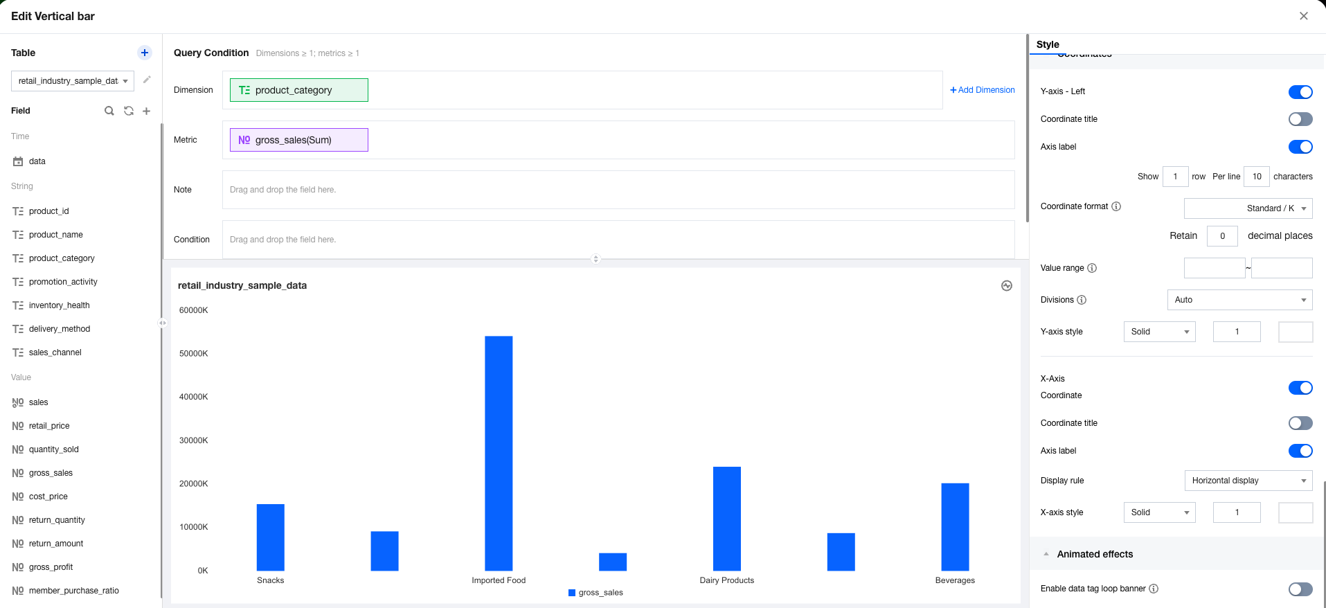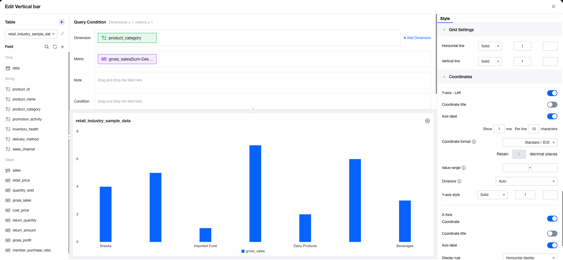 1. Enter the canvas, add a column chart component, then set the dimension and metric. 2. In the metric field, select quick calculation, ranking, and then ascending sequentially.