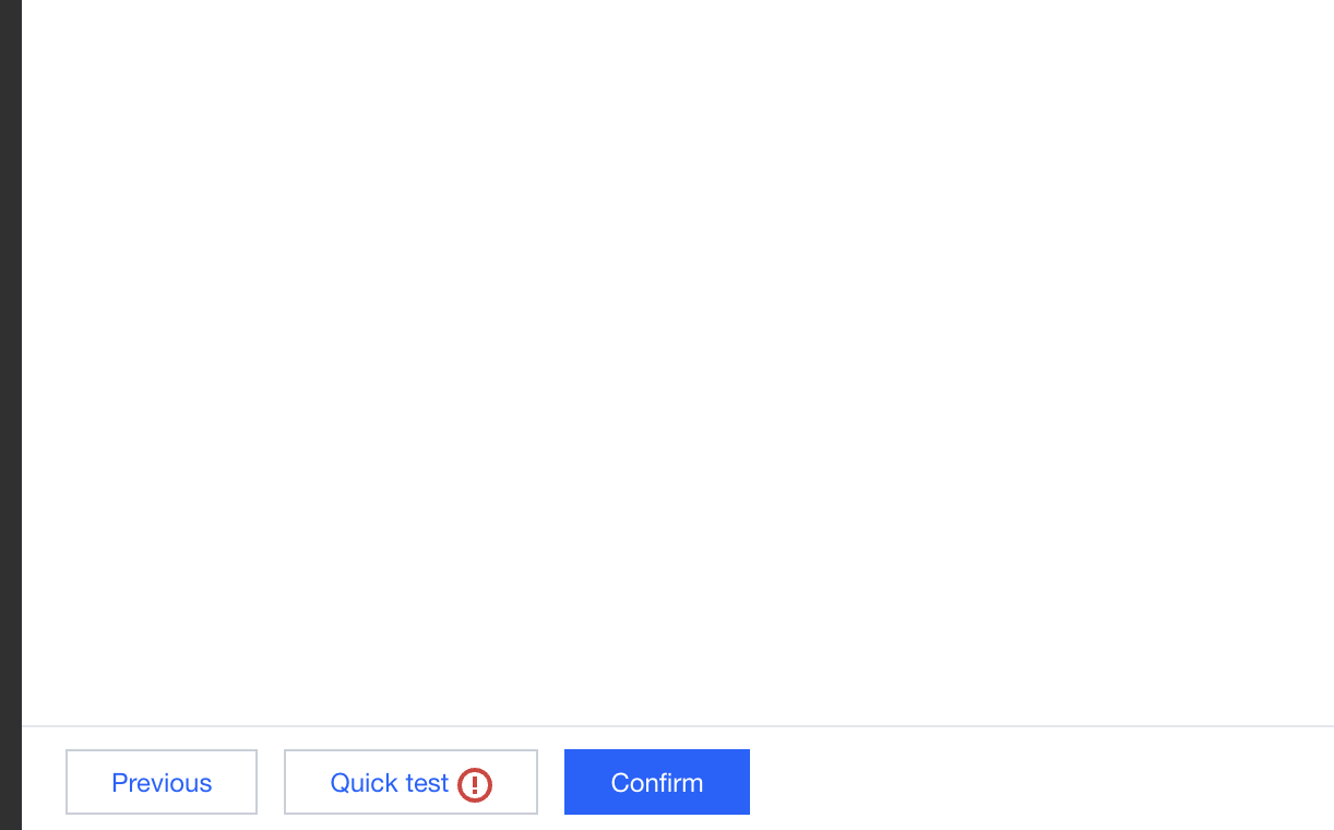 4. After entering all the information, you can click One-Click Testing at the bottom to perform a connectivity test. If a prompt indicating a data source connectivity exception appears as shown below, the connection fails. In this case, check whether the connection information, such as the username and password, is entered correctly.