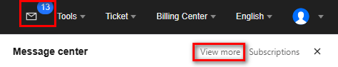 3. In the pop-up window, click Message Center to enter the Message Center console. 2. In the top navigation bar of any product console, click the in-site message icon.