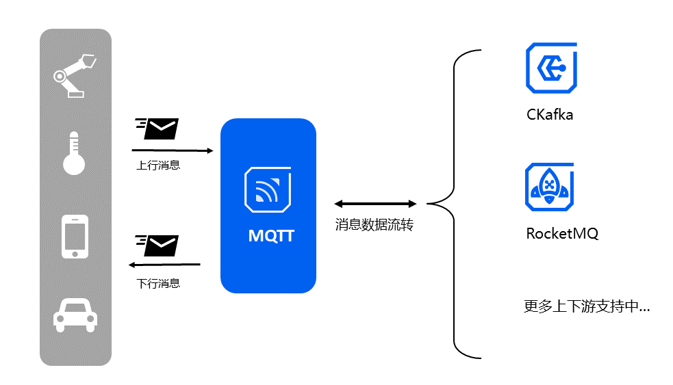 By configuring message replication tasks, data is synchronized between different products (within the same region or across different regions). Currently, message integration and interoperability between MQTT and Message Queue CKafka/RocketMQ are already supported. Subsequently, data integration channels between MQTT and more cloud products will be connected.